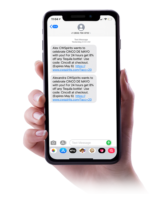 1 text message sent to the CWS community per week, featuring brands and promotions. weekly and monthly pricing options.