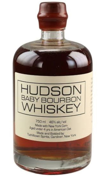 Hudson Baby Bourbon is an artisanal American straight bourbon whiskey made in small batches in upstate New York and aged exclusively in new charred American oak barrels that are significantly smaller than standard, resulting in enhanced wood influence and flavor intensity. Crafted from a high-corn mash bill with added rye and malted barley, it offers rich aromas of caramel, vanilla, and toasted oak. On the palate, notes of honeyed grain, baking spices, orchard fruit, and warm cinnamon unfold, leading to a long, smooth finish with lingering oak warmth and sweet spice, making it ideal for sipping neat or with a splash of water.