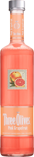 Three Olives Pink Grapefruit Vodka is premium London vodka blended with the tangy, sour-sweet flavor of real pink grapefruit. Perfect over ice with a splash of soda, this vodka has the aroma of both grapefruit juice and peel, and the palate brings grapefruit flavor with a hint of floral character. The finish is lightly bitter, with traces of lemon and strawberry.
