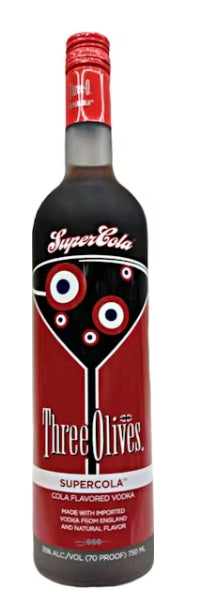 Three Olives Supercola Vodka is a bold and nostalgic flavored spirit that blends premium English vodka with the classic taste of fizzy cola for a smooth, sweet, and refreshingly familiar profile. Distilled multiple times for clarity and purity, it offers a clean base layered with rich caramel notes, hints of vanilla, and subtle citrus zest that mimic the lively character of traditional soda. The aroma is bright and inviting, while the palate delivers a balanced sweetness with a crisp, easy finish that avoids heaviness. Its silky texture makes it simple to enjoy chilled, poured over ice, or mixed with complementary flavors for creative cocktails. Fun, approachable, and full of retro charm, this vodka brings a playful twist to any casual gathering or bar setup.
