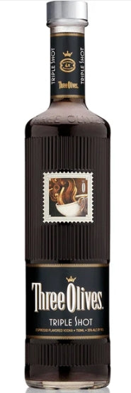 Three Olives Triple Shot Espresso Vodka is a bold, coffee-infused spirit that blends premium English vodka with the rich, roasted character of freshly brewed espresso for a smooth yet energizing flavor profile. Distilled multiple times for clarity and balance, it opens with deep aromas of dark coffee beans, cocoa, and subtle vanilla, followed by a velvety palate layered with bittersweet espresso notes and gentle sweetness. The texture is clean and silky, allowing the coffee flavors to shine without heaviness, while the finish remains crisp and pleasantly lingering. Its robust yet approachable character makes it ideal for chilled shots, dessert-style cocktails, or classic coffee-inspired drinks like espresso martinis, delivering a flavorful and aromatic twist that stands out in any vodka collection.